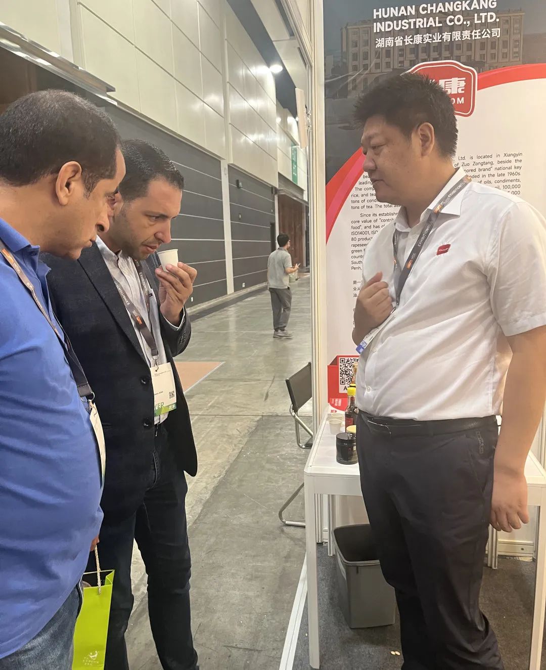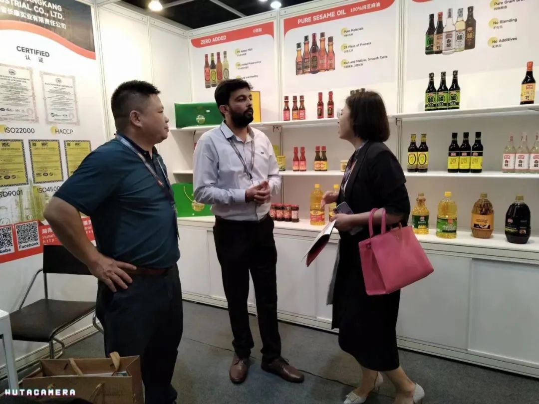 作為優(yōu)質(zhì)湖湘企業(yè)代表,長(zhǎng)康的展臺(tái)自開展之初便人氣滿滿,香港本地客商與尋找商機(jī)的境外訪客絡(luò)繹不絕,其中長(zhǎng)康的陳醋和芝麻油更是因其獨(dú)特風(fēng)味而備受追捧。