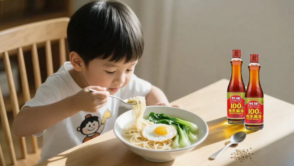 清晨來一碗熱氣騰騰的青菜雞蛋面,淋上一勺長康純芝麻油,芝麻油的醇厚香味裹著面條,一口下去又香又暖,青菜清爽、蛋花嫩滑,吃完渾身都有勁兒。