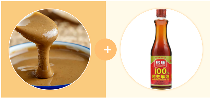 因為本身芝麻醬中就有一些芝麻研磨而產(chǎn)生的油,再用更順滑的香油將兩者混合能更好地融合在一起。而且用香油調(diào)稀的好處是存放的時間相對比較長。